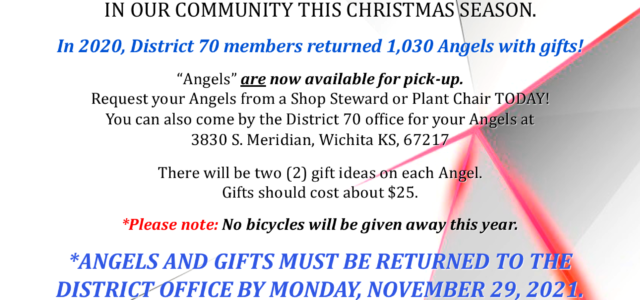 A friendly reminder that Angels for this years Angel Tree Program are due back to the District 70 office by 5:00 p.m. on Monday, November 29th.