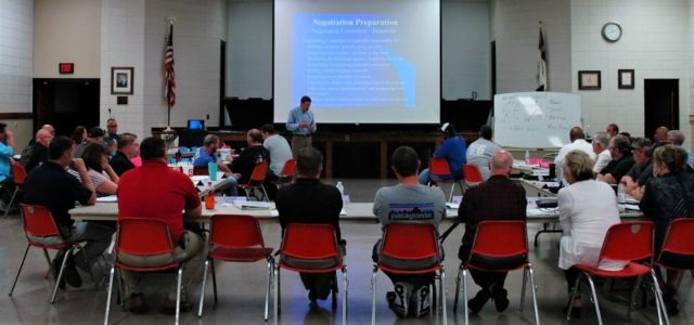 With multiple collective bargaining agreements set to expire over the course of the next 14 months, Chris Wagoner, IAM Director of the William W. Winpisinger Education and Technology center was brought in to instruct a “Strategic Planning Program – Bargaining” class for negotiators in District 70. Brother Wagoner is instructing the three-day class, held June 25-27, 2019 for IAM negotiating committee members from Spirit AeroSystems, Johnson Controls, Inc. and Textron Aviation.
