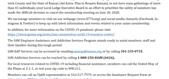 June 20, 2020 Membership Meeting has been Canceled