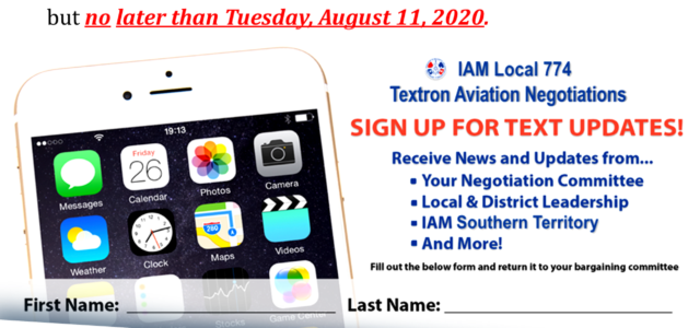 Please return both the text authorization card and survey to your Shop Steward and or Plant Chair as soon as possible, but no later than Tuesday, August 11, 2020.