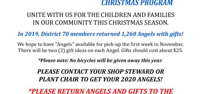 Machinists Unite for the 2020 Holiday Season to help the children and families in our community. You can help, consider adopting a Salvation Army Angel this year!