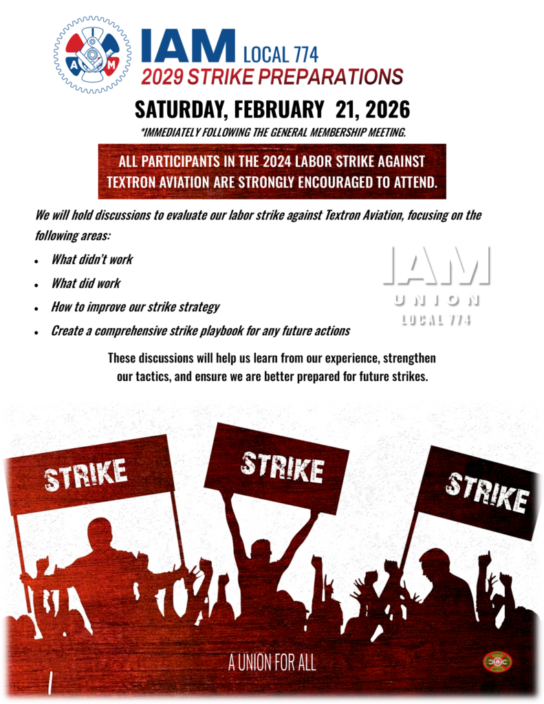 ALL PARTICIPANTS IN THE 2024 LABOR STRIKE AGAINST TEXTRON AVIATION ARE STRONGLY ENCOURAGED TO ATTEND.