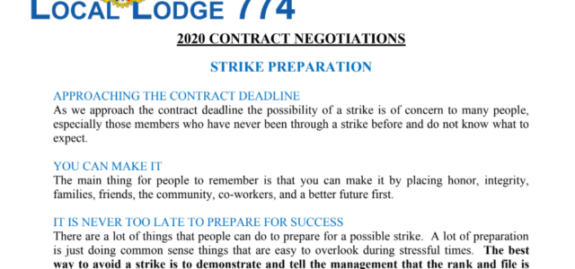 We have compiled information on our webpage (Click the 2020 Contract Negotiations tab) in preparation for an inability to receive a fair final offer from Textron Aviation. Take a look at our Local Lodge 774 Strike Preparation information at https://bit.ly/2EaeOKG