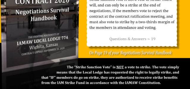 Members who have questions about the negotiation process can look in their custom Contract 2020 Negotiations Survival Handbook. Here’s an example on the topic of “Strike Sanction” voting.