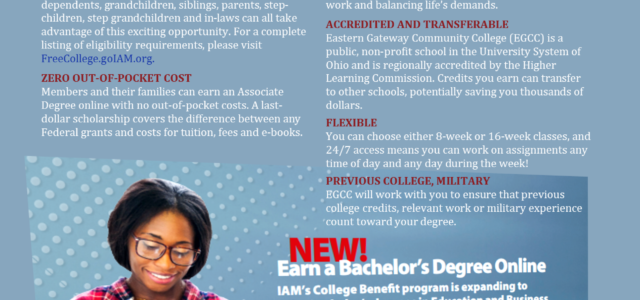 The IAMAW Free College Benefit – NOW ENROLLING The IAMAW Free College Benefit – NOW ENROLLING FOR SPRING CLASSES STARTING MAY 24, 2021. Please follow and like us: