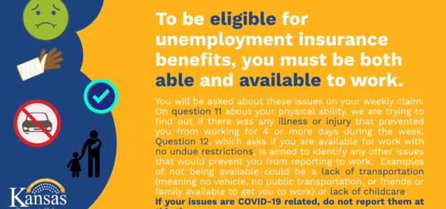 Attention Members collecting unemployment: Pay attention to questions 11 and 12 when filing your weekly claim! If you report that you are not able to work or available for work, your benefits will be delayed as the unemployment claims office are required to investigate these issues before issuing payments. If