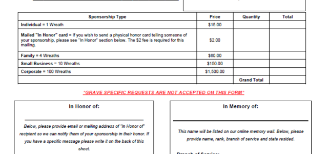 Please note, ALL sponsored wreaths are shipped directly to the